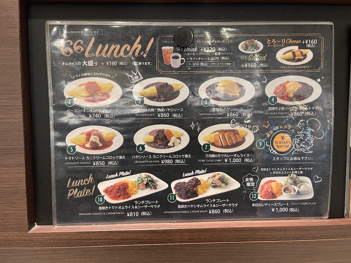 66cafe Roppongi 6-chome cafeteria Iidabashi shop Menu